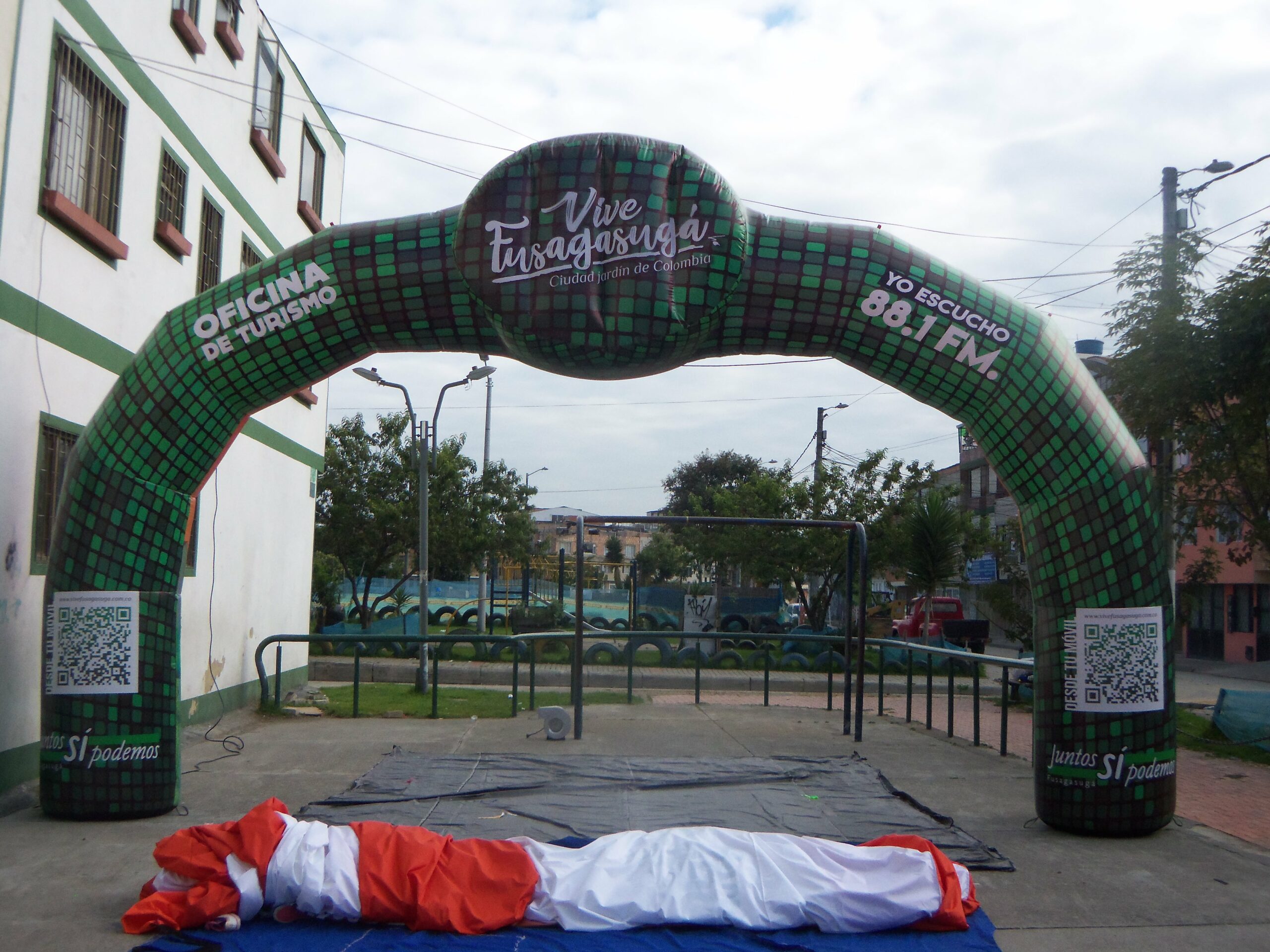 La impresión digital full color cubre toda la superficie del arco y el colchón, permitiendo integrar diseños gráficos, colores institucionales y mensajes con máxima fidelidad y detalle. Este modelo puede fabricarse en diferentes tamaños y estilos, adaptándose a campañas juveniles, institucionales, deportivas o promocionales.