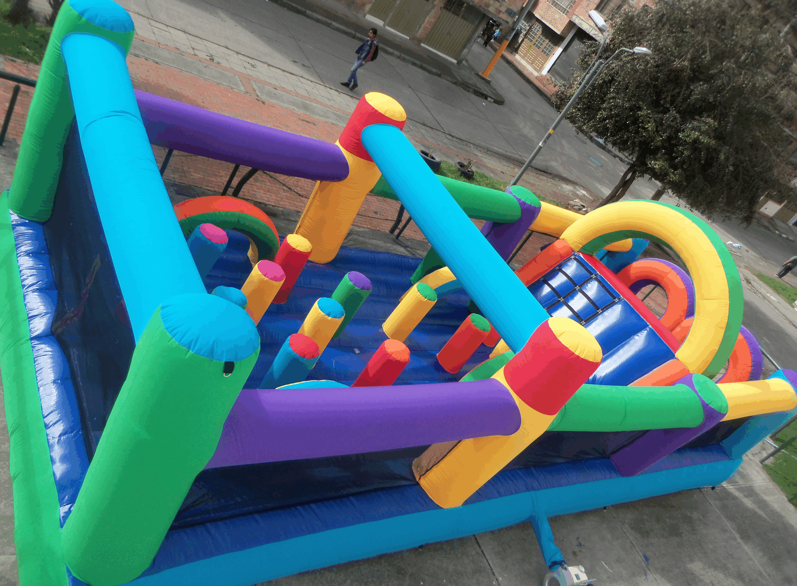 La Carrera de Obstáculos Inflable El Camino del Héroe es un inflable dinámico diseñado para desafiar y entretener a los participantes con una serie de obstáculos vibrantes. Su estructura incluye múltiples barreras, pilares, túneles y toboganes, ofreciendo un recorrido lleno de acción y emoción.