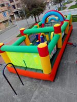 Además de los desafiantes obstáculos, los toboganes añaden un extra de diversión al circuito, permitiendo que los niños disfruten de deslizamientos rápidos entre cada desafío. También incorpora un colchón saltarín con elementos interactivos, brindando variedad y dinamismo al juego.