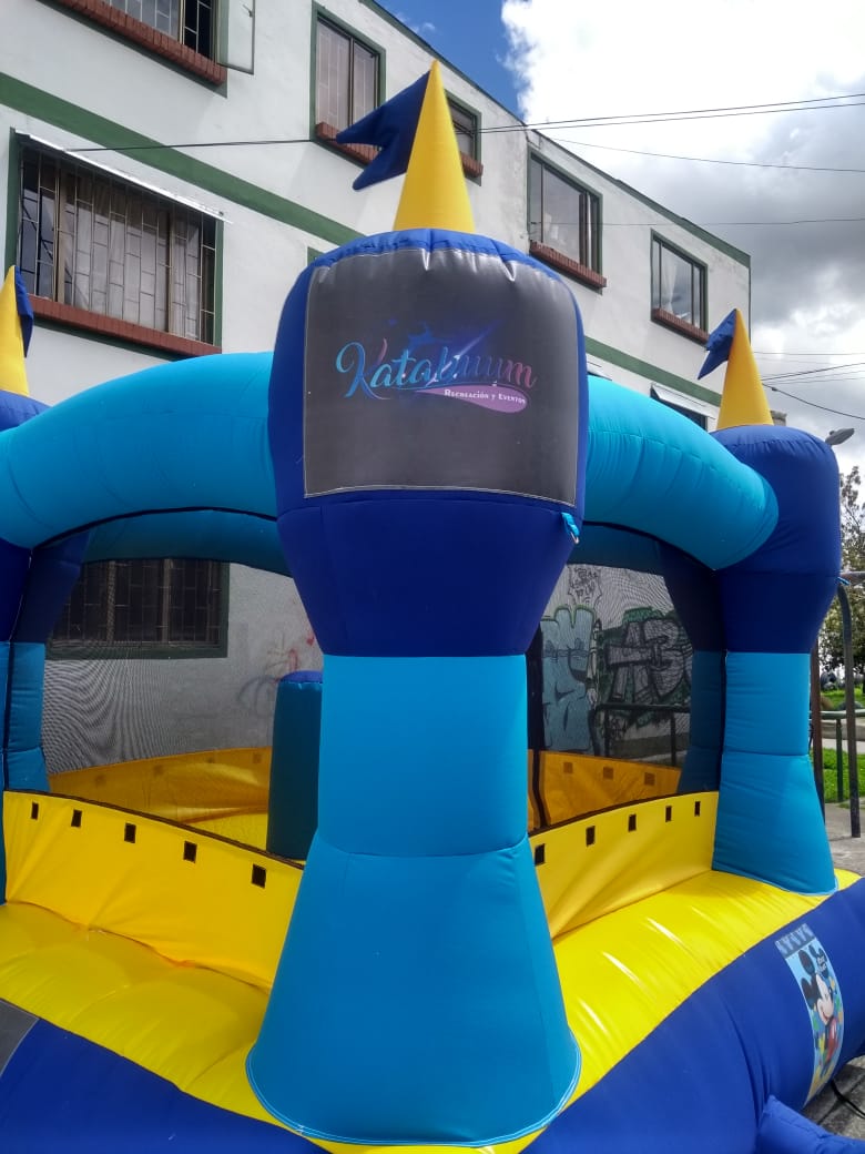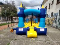 Con una amplia área de salto y un tobogán integrado, este inflable ofrece diferentes opciones de juego, permitiendo que los pequeños disfruten de diversas actividades en un solo espacio. Su combinación de colores vivos y estampados de personajes infantiles hacen que destaque en cualquier tipo de celebración.