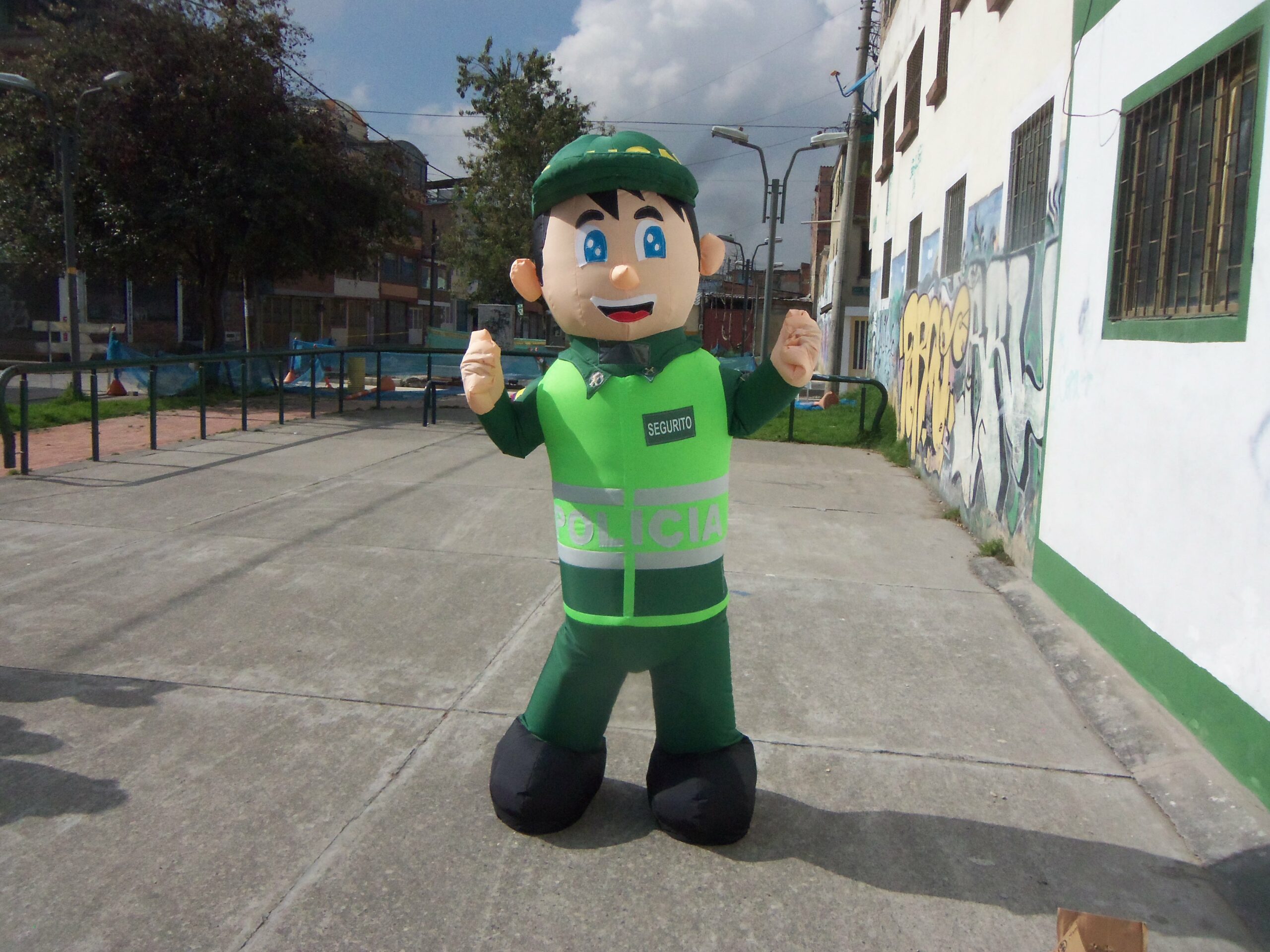 La Réplica Inflable Caminante Policia es un disfraz inflable diseñado para ser operado desde su interior, permitiendo desplazamientos fluidos e interacción directa con el público. Su estructura imponente y estética uniforme lo convierten en una herramienta ideal para activaciones institucionales, jornadas educativas, campañas ciudadanas y eventos promocionales de alto impacto.