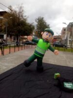 Gracias a su estructura inflable, es ligero, cómodo y de fácil montaje, lo que permite una operación prolongada sin afectar la movilidad ni la presencia escénica del personaje. Es perfecto para recorrer espacios abiertos o cerrados, dinamizar entornos y generar cercanía con audiencias de todas las edades.