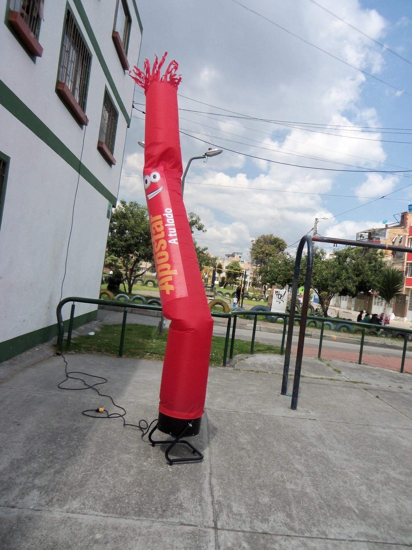 Este modelo tubular proyecta una imagen enérgica y divertida, ideal para reforzar presencia de marca, señalar ubicaciones estratégicas o atraer tráfico a puntos de venta. Funciona con un sistema de aire continuo que lo mantiene en movimiento, generando un efecto visual que transmite dinamismo, cercanía y entusiasmo.