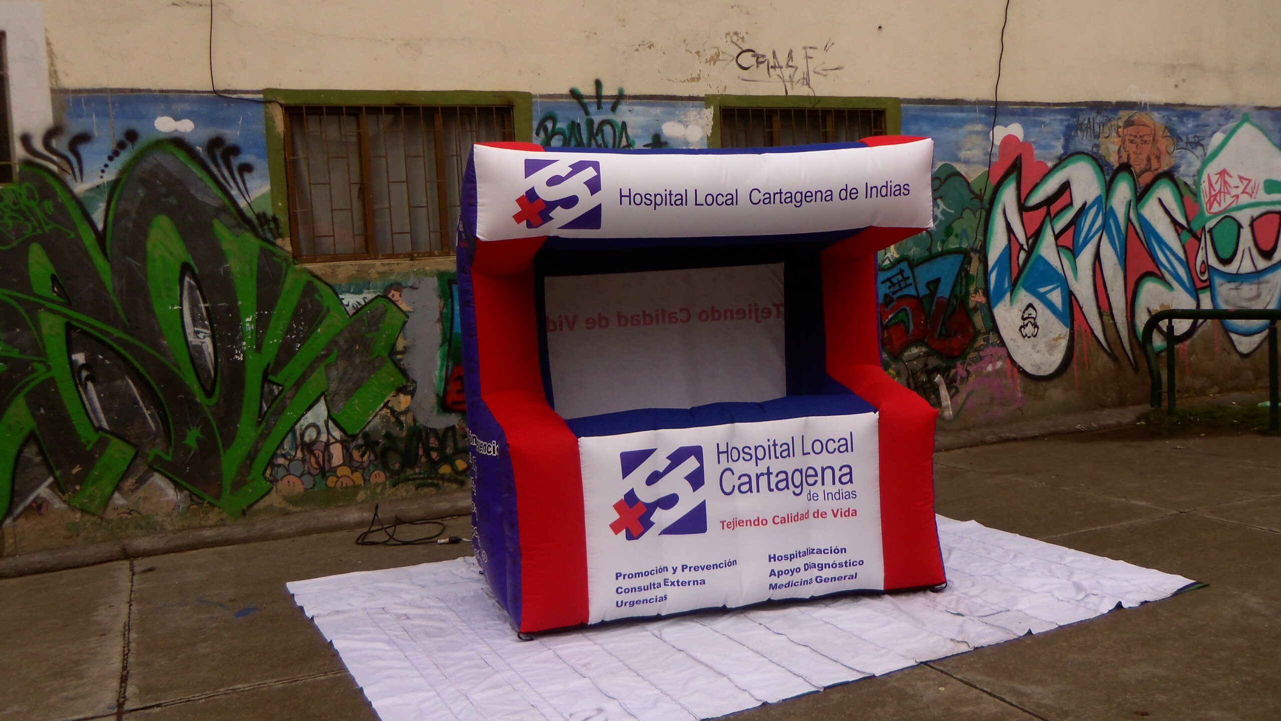 El Stand Inflable es una estructura portátil y visualmente atractiva, ideal para eventos promocionales, activaciones de marca y puntos de información. Su diseño incorpora un área amplia para logotipos y mensajes, permitiendo una personalización efectiva según la campaña o institución que lo utilice. Su presencia llamativa facilita la interacción con el público, proporcionando un espacio accesible para recibir información o acceder a servicios específicos.