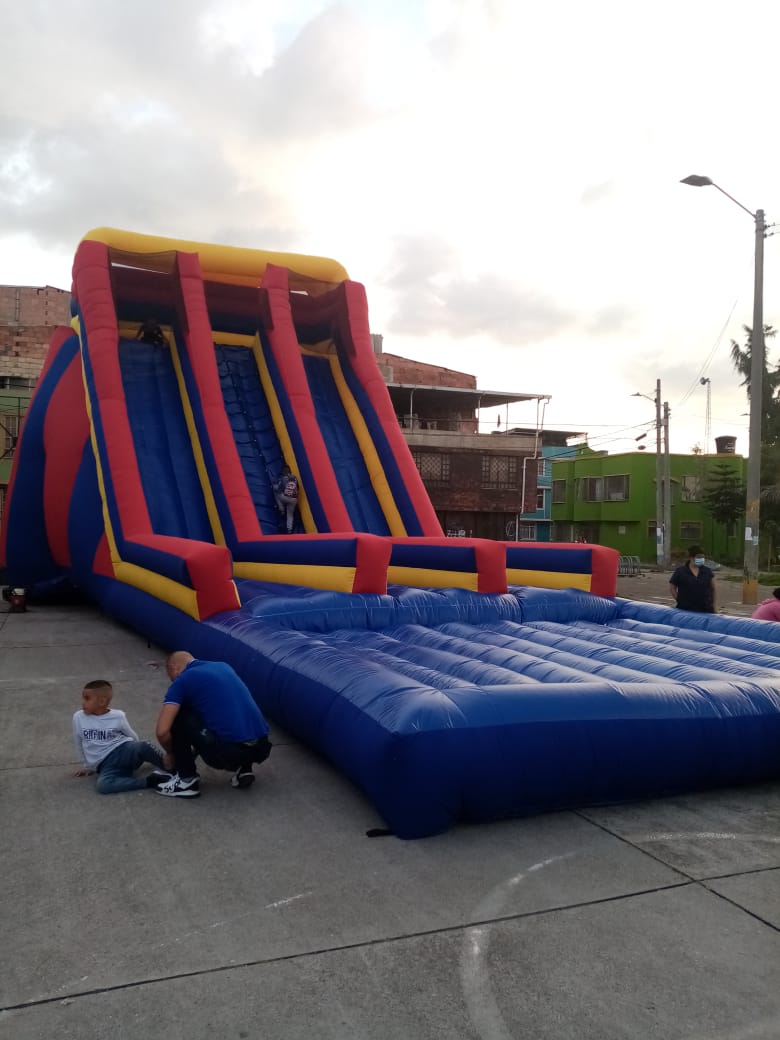 El Tobogán Inflable Carrera Extrema es un inflable diseñado para ofrecer velocidad, competencia y diversión en cada deslizamiento. Su estructura cuenta con tres carriles independientes, permitiendo que varios participantes compitan al mismo tiempo en una emocionante carrera.