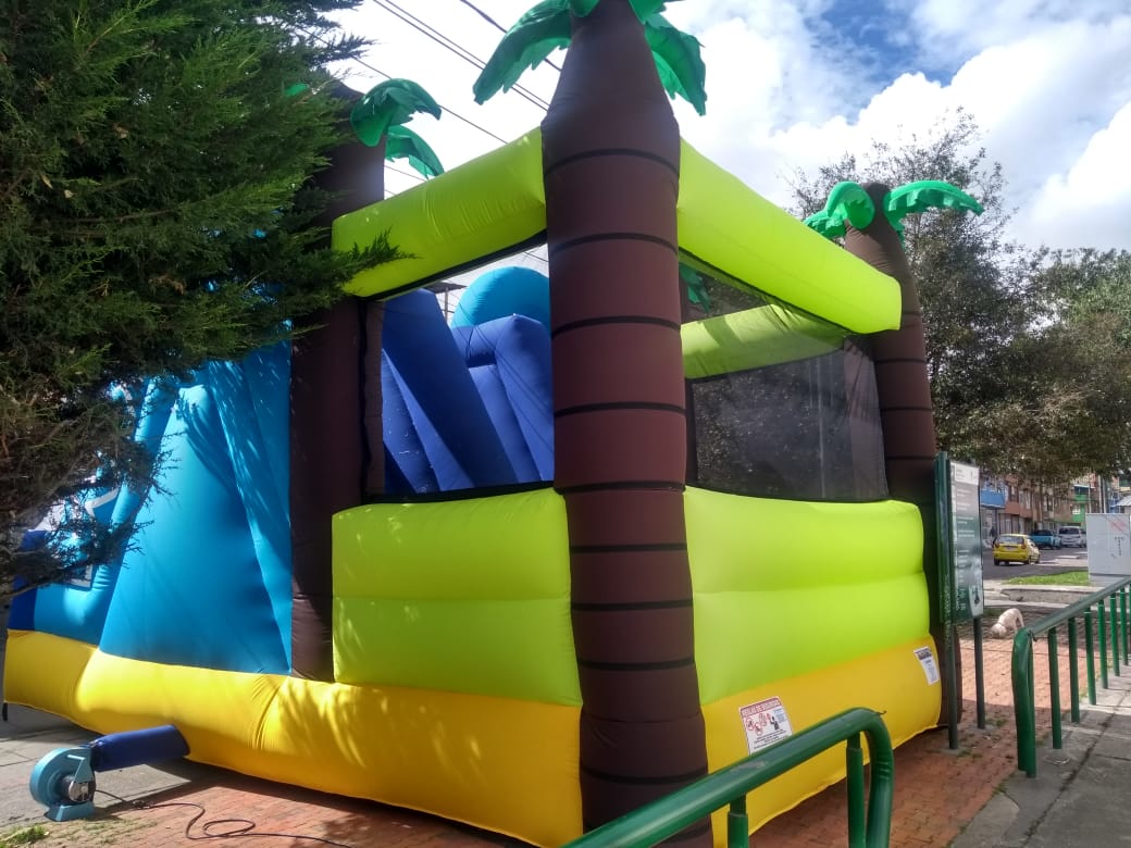 En la parte trasera, incorpora un colchón inflable, ideal para saltos y juegos antes de deslizarse por el tobogán. También cuenta con elementos interactivos, que enriquecen la experiencia y fomentan la exploración dentro del inflable.