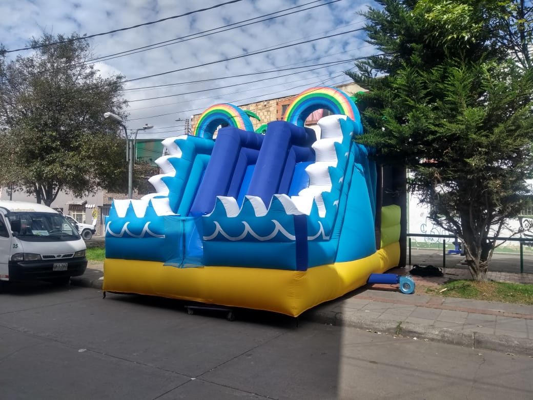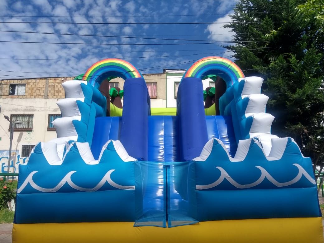 El Tobogán Inflable Mundo Acuático es un inflable diseñado para brindar una experiencia refrescante y llena de diversión. Su estructura cuenta con dos carriles de deslizamiento, permitiendo que varios niños disfruten al mismo tiempo de emocionantes bajadas.