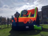 Este inflable también cuenta con espacios para logotipos, ideales para personalización en eventos y promociones. Construido con materiales resistentes y seguros, garantiza estabilidad y diversión, convirtiéndose en la opción perfecta para celebraciones temáticas y espacios recreativos.