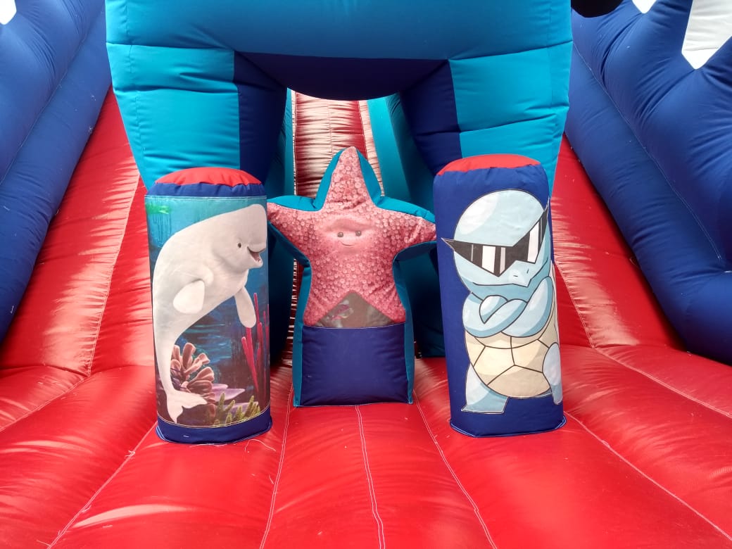 Fabricado con materiales resistentes y de alta calidad, garantiza estabilidad y seguridad en cada uso. También dispone de áreas adaptables para logotipos y personalización, ofreciendo versatilidad para distintos eventos. Su diseño llamativo y temática envolvente lo convierten en el centro de atención en parques, fiestas y espacios recreativos. ¡Una experiencia inflable que hará vivir la magia del océano!
